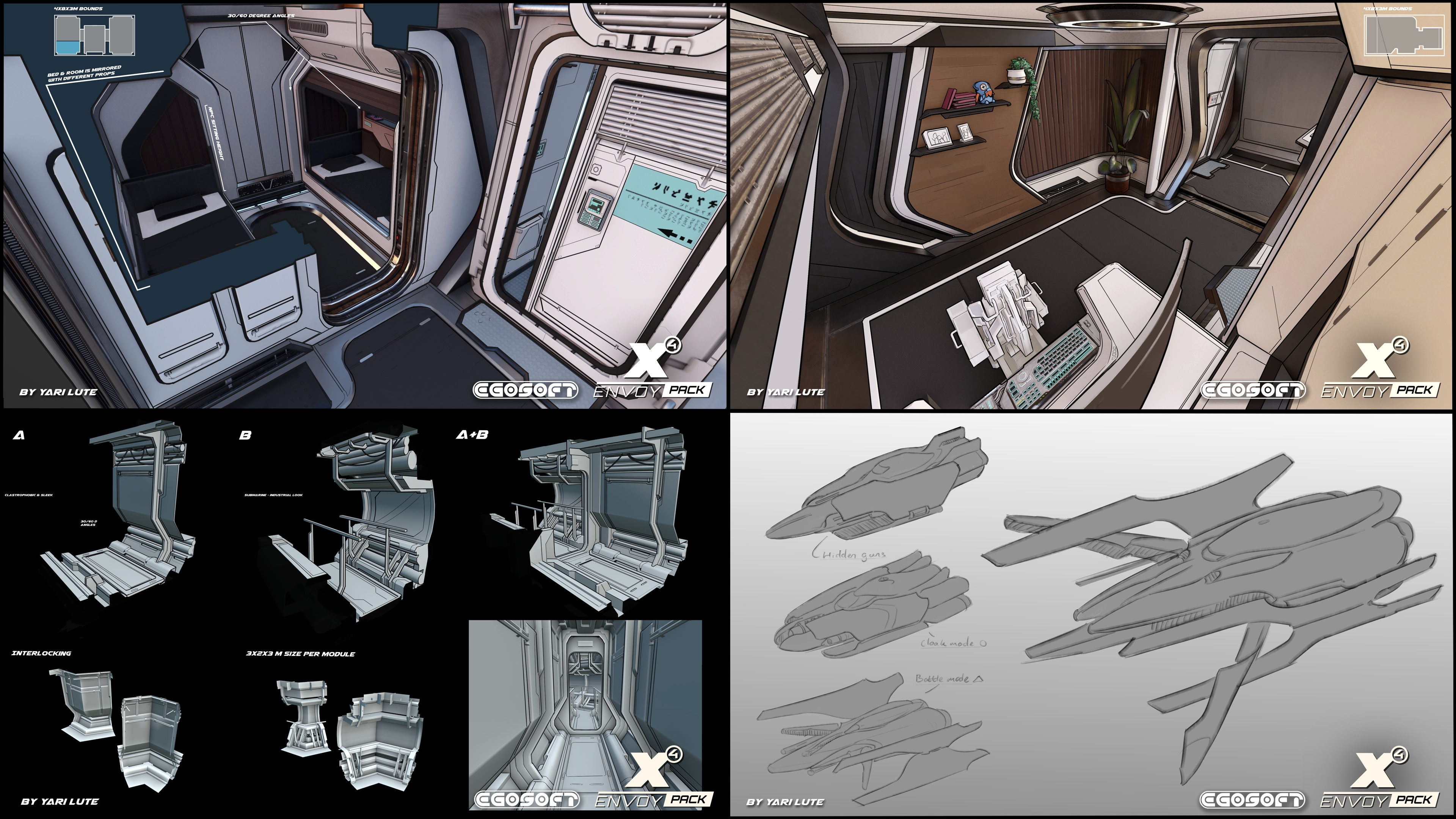 The Envoy features one of X4's most fully explorable interiors, designed to feel like a real, self-contained environment. Every room and corridor serves a purpose, reflecting the ship's role as a stealth-ready frigate developed for delicate operations.